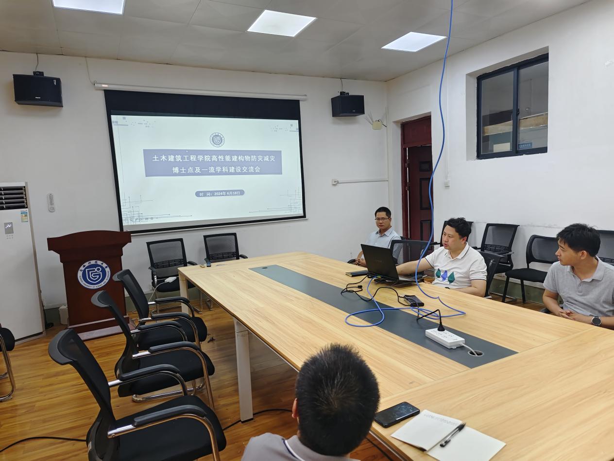 2024年6月21日下午,我校土木工程一流学科高性能建构筑物工程防灾减灾方向教师在建工楼406会议室组织召开学科建设研讨会。土建学院副书记、学院院长、研究方向学术带头人邓宇主持。
