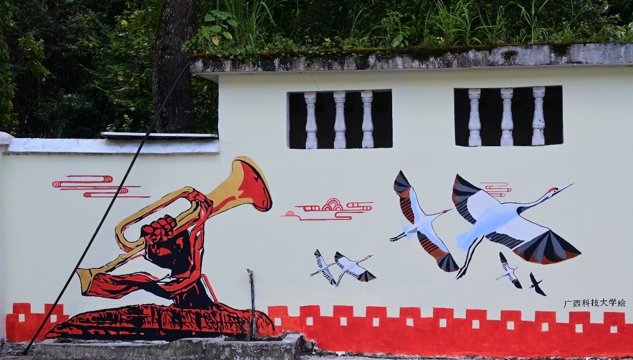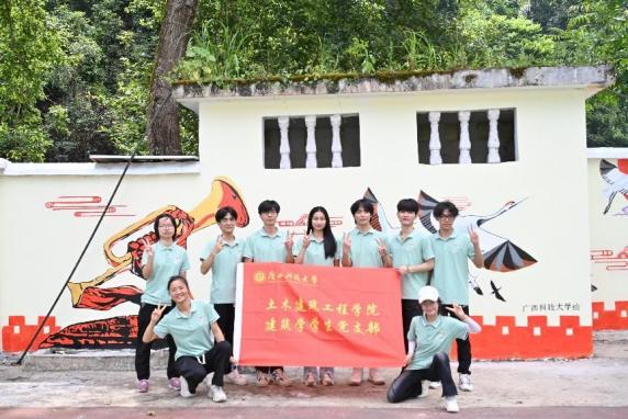 2024年7月12日至18日,土建学院建筑学学生党支部赴柳州市融安县泗顶镇寿局村开展暑期“三下乡”社会实践活动。本次“服务人民 筑梦乡村”活动以“军民团结”为主题,支部成员通过创意墙绘,美化了乡村形象,用实际行动为乡村振兴贡献了青春力量。