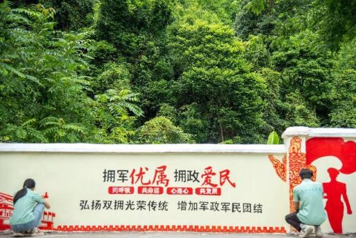 在墙绘过程中,党员们分组协作,默契配合。一笔一画地展现了党员们为人民服务的初心,以及对参军拥军的崇敬。画笔在光影间跳跃,美丽乡村在手下展现。