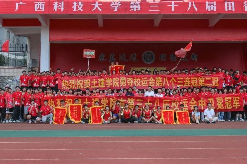 广西科技大学第三十八届田径运动会圆满结束,土建学院在运动会中取得团体总分第一名,男子团体总分第一名,女子团体总分第一名。