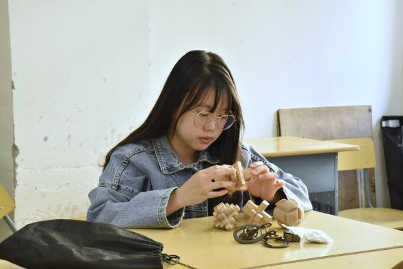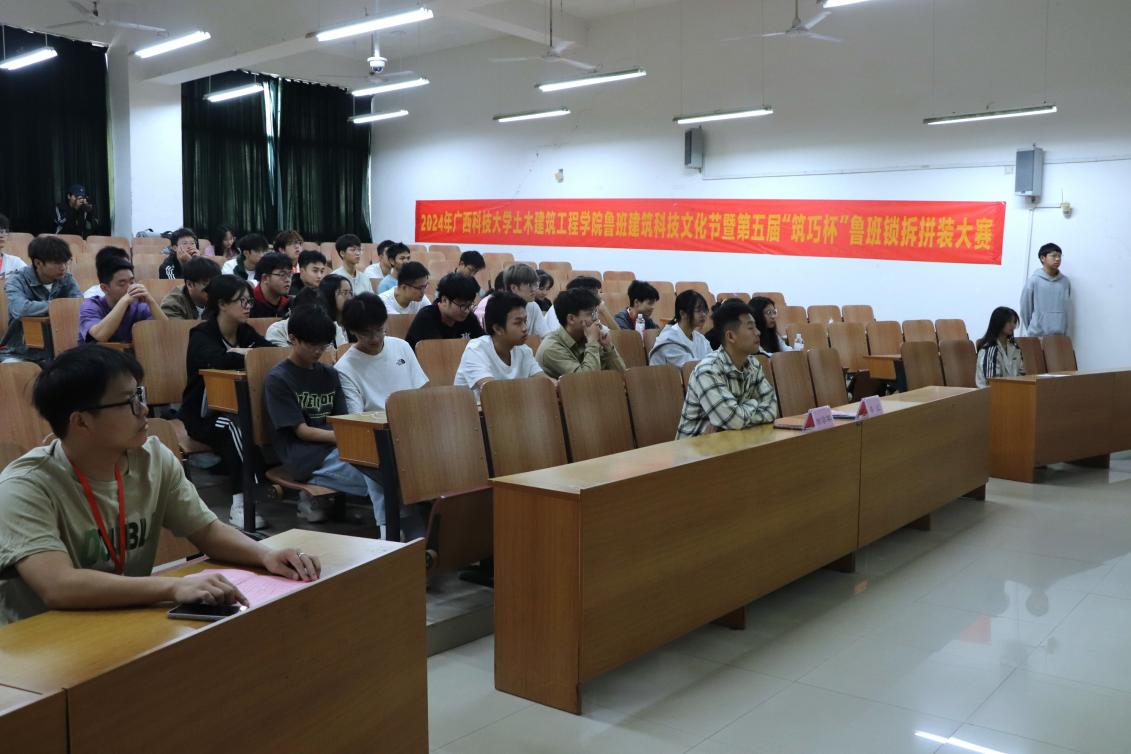 近日,土建学院在第五教学楼举办第五届“筑巧杯”鲁班锁拆拼装大赛。学院辅导员李江、谢学华出席开幕式。