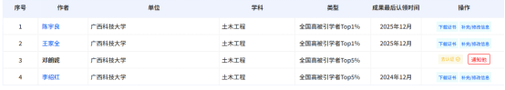 近日,2025年度中国高被引学者榜单正式发布。我院共有4位学者入选,其中,陈宇良教授和王家全教授在土木工程领域入选“中国知网高被引学者Top1%”,邓朗妮教授和李绍红博士在土木工程领域入选“全国高被引学者Top5%”。