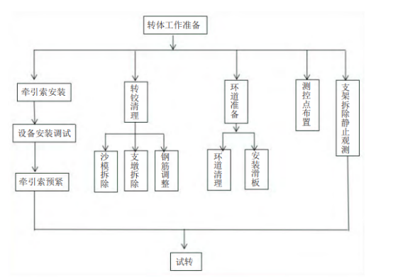 在转体前设置临时支撑系统,确保结构在转动过程中的稳定性;通过配重设计和重心调整,实现转体过程中结构自平衡。