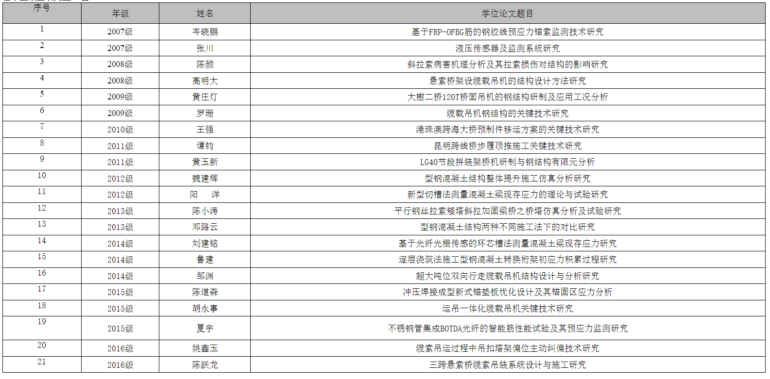 研究生课程: 大跨桥梁结构、高等桥梁结构理论与结构分析方法、高等桥梁结构理论及设计方法、现代预应力混凝土结构