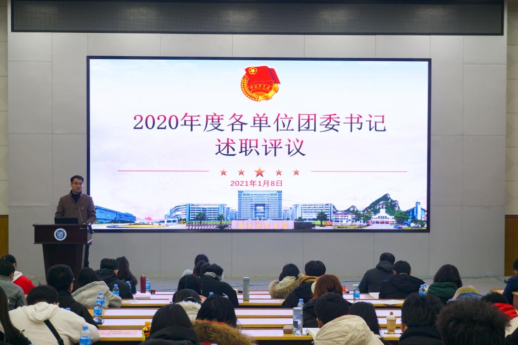 为深入贯彻落实党的十九届五中全会精神,全面梳理学校共青团系统在过去一年取得的成绩,总结经验、互学互鉴、谋划未来,推进共青团工作深入改革创新,切实服务学校发展建设。1月8日上午,2020年广西科技大学基层团委年度考核答辩会在东环校区举行。校团委全体干部、各二级学院、附属医院团组织负责人参加答辩会,答辩会采取各基层团组织负责人轮流上台述职、答辩,全体团干、学生代表共同参与评分的方式进行。
