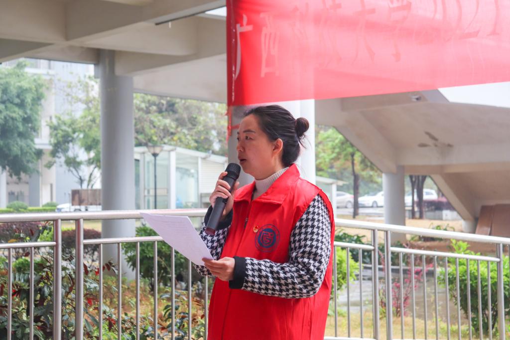 最后,校团委副书记王湘林在启动仪式上作动员讲话,她对积极参与学校、社区疫情防控工作及我长期以来关心、支持、参与到我校志愿服务工作的青年志愿者给予了表扬和肯定,她鼓励全校青年志愿者践行“奉献、友爱、互助、进步”的志愿服务精神,从身边事做起,从点滴小事做起,传帮带身边的每一个人,汇聚成学雷锋志愿服务的洪流。她希望大家发扬自强不息的追梦精神,不断坚定志愿服务信心;发扬乐于助人的奉献精神,不断增强志愿服务意识;发扬锐意进取的创新精神,不断丰富志愿服务内涵,用崭新的姿态迎接建党100周年。