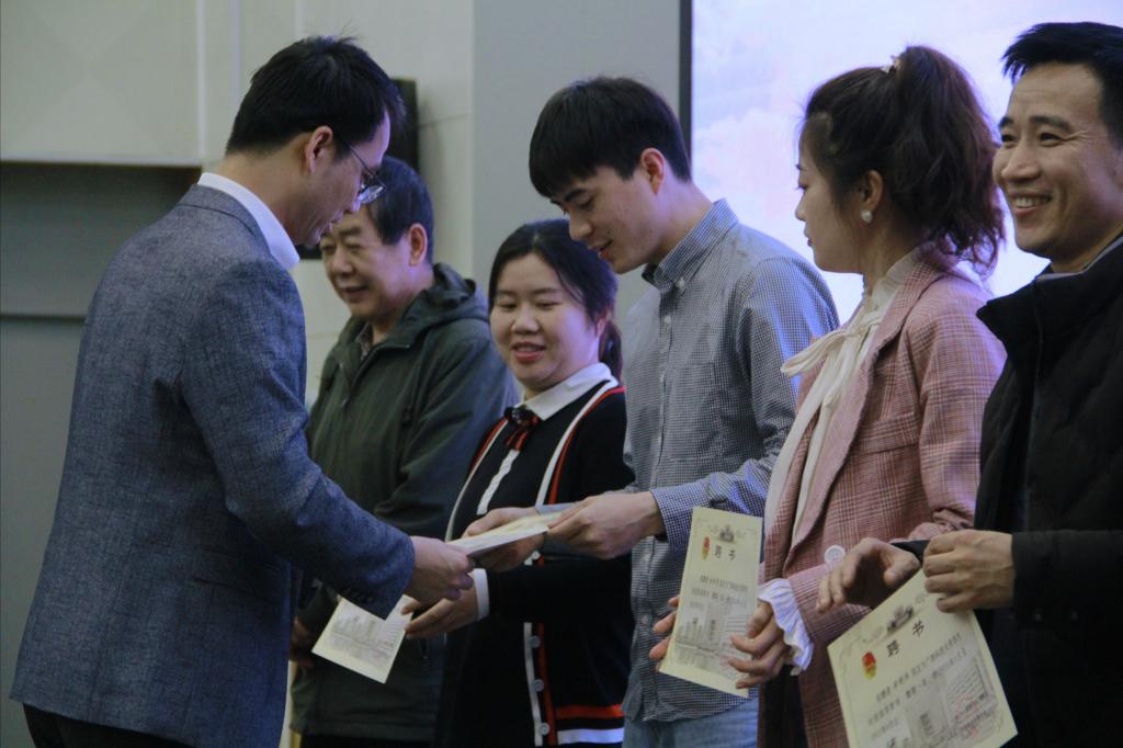 会议伊始,蓝娟副书记从不断强化思想政治引领,培养担当民族复兴大任的时代新人、坚持搭建服务平台,创新社团文化传播方式、健全制度优化体系,助力学生社团发展等三个方面向与会人员介绍了我校学生社团的基本情况。接着,她宣读了《关于公布广西科技大学学生社团指导教师名单的通知》(科大团委发〔2020〕28号)文件,校团委朱广生为新一届学生社团指导教师颁发聘书。
