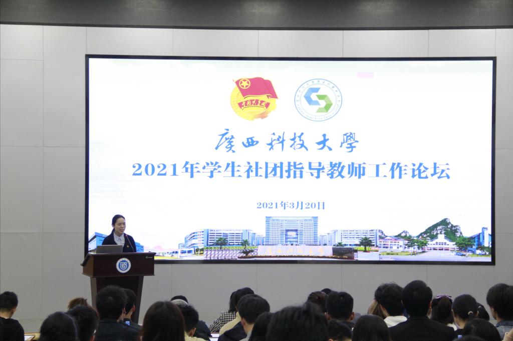 2021年3月20日,2021年学生社团指导教师工作论坛在我校东环校区图书馆报告厅举行。校团委书记朱广生,校团委副书记文家燕、王湘林与学生社团指导教师、社团负责人100余人参加会议,会议由校团委副书记蓝娟主持。