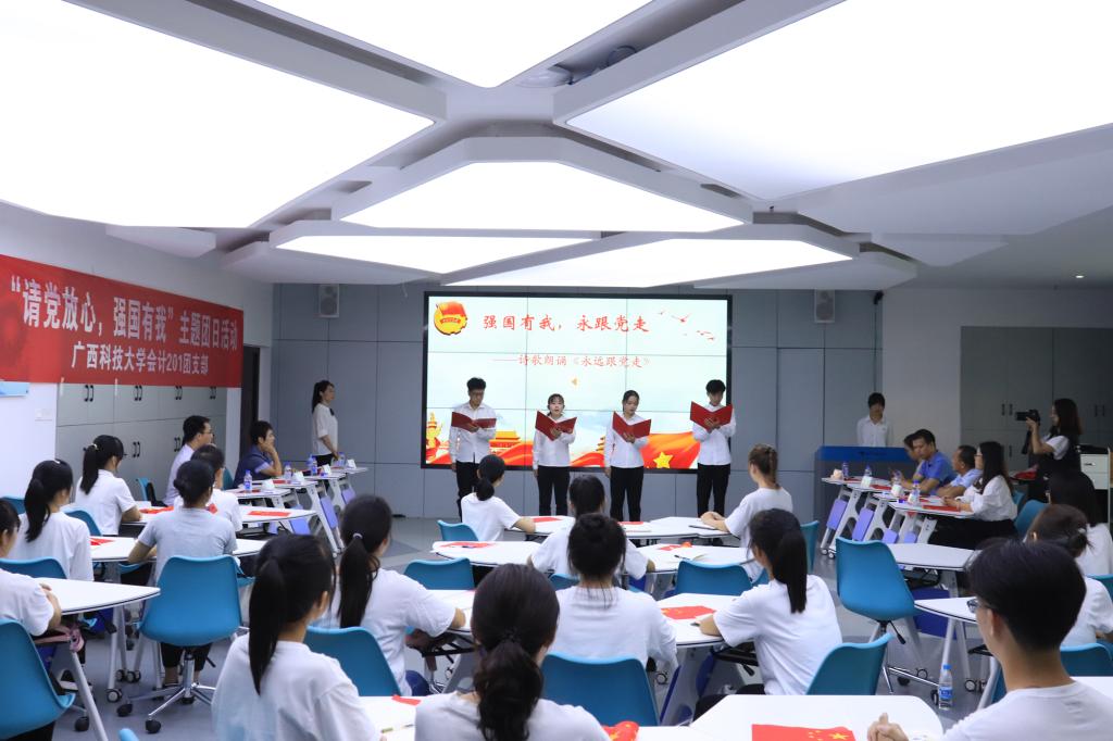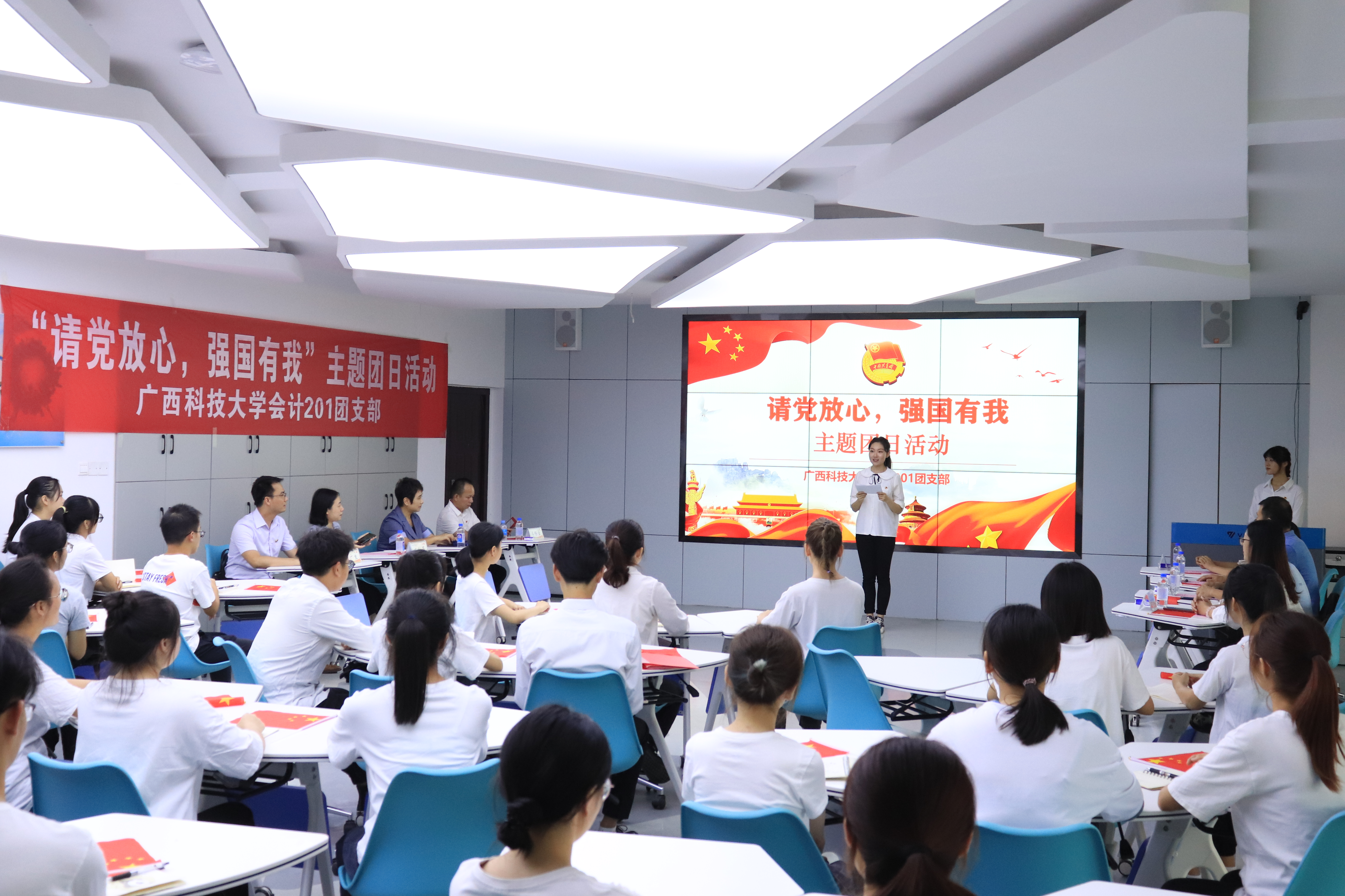 为深入学习习近平总书记“七一”重要讲话精神,持续深化共青团“学党史、强信念、跟党走”学习教育。9月29日下午,我校会计学专业201团支部举办“请党放心,强国有我”主题团日活动,共青团广西区委副书记左向蕾、共青团广西区委宣传部部长李畅宝、学校党委副书记覃萍,团委、学工部(处)和经管学院相关领导参加了本次团日活动。