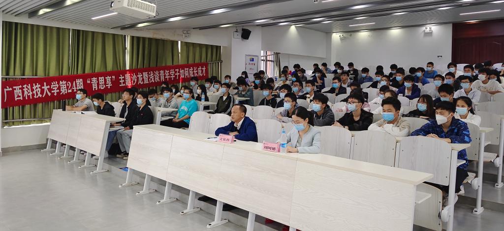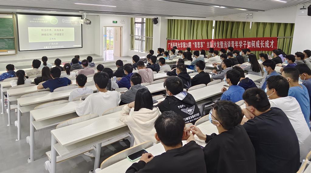5月15日上午,我校第24期共青团“青思享”主题沙龙在柳东校区T1-105教室举行,本期沙龙的主题为“谈新时代青年学子如何成长成才”,活动由北京广西博士生联谊会和广西科技大学团委联合举办。主讲嘉宾为广西青年五四奖章获得者、广西大学教授、物理科学与工程技术学院常务副院长王祥高,我校团委副书记文家燕、二级学院团委书记代表以及180名学生参加了此次活动。