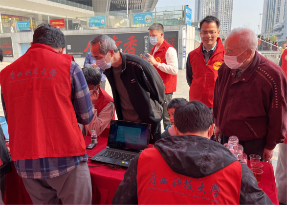 3月5日上午,全区纪念毛泽东等老一辈革命家为雷锋同志题词六十周年暨2023年学雷锋志愿服务月集中示范活动在柳州市火车站东广场举行。学校团委书记朱广生受邀带领品牌志愿服务IT志愿服务队参加了此次活动。