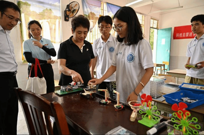 覃萍看望农村儿童机器人编程义教及科技作品展示实践队