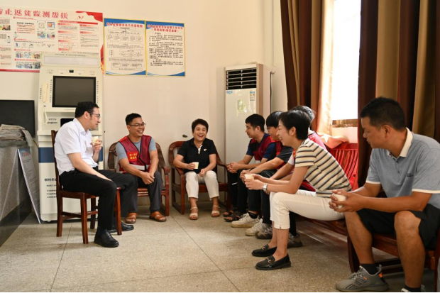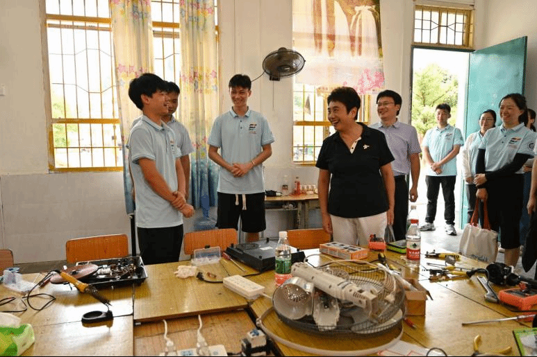 在此期间,覃萍、张发钦等来到融安县泗顶镇,看望正在开展暑期“三下乡”社会实践团队的队员,他们走访了解了“七彩假期”夏令营、电商直播培训、机器人编程、电器免费维修服务、政策宣讲等各个项目的开展情况,与师生们亲切交谈,看到实践队员用自己所学专业和知识服务当地群众,用青春与智慧助力乡村振兴,感到很欣慰,频频称赞。