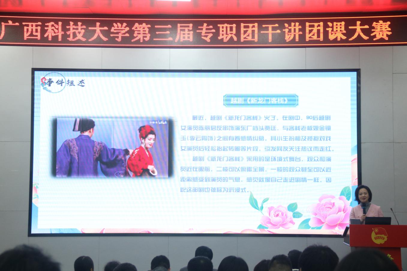 比赛中,团干部们以微团课的形式,结合本职工作,围绕习近平新时代中国特色社会主义思想、习近平总书记关于青年工作的重要思想、党史团史、国情区情和团的理论、工作实务等内容进行讲授。团课主题创新鲜明、内容丰富多彩、案例鲜活生动、语言抑扬顿挫,充分展示了我校团干部良好的精神风貌和扎实的理论基础。