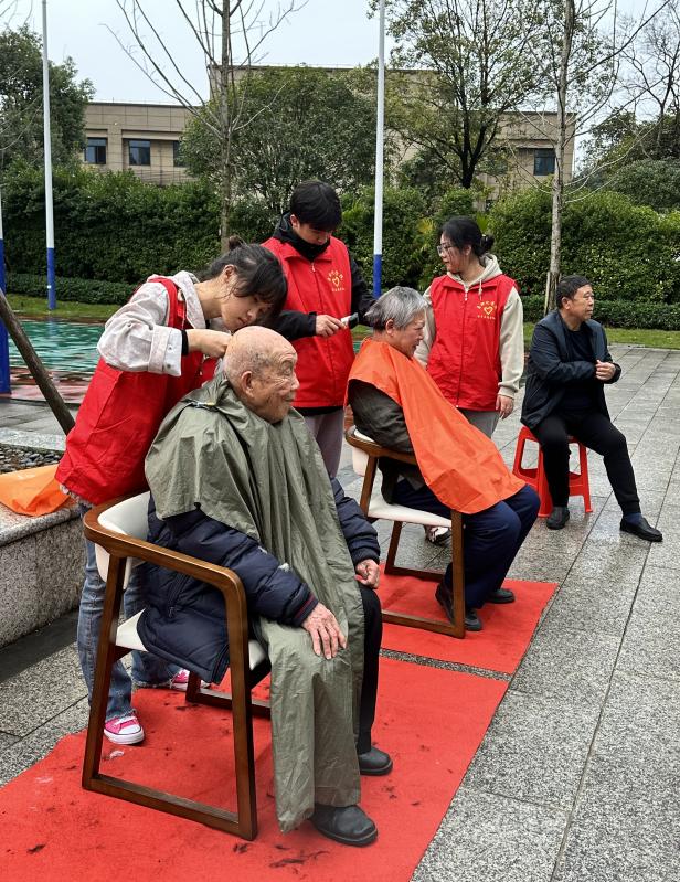 圆梦行动,敬老爱老。自动化学院、理学院青年志愿者们到居民社区开展敬老爱老志愿服务活动,帮助老人测量血压、血糖,在老人身体护理服务区,志愿者们一边帮高龄老人修指甲、剪头发,一边和老人们亲切交谈,听他们诉说家长里短,关心他们的身体健康,场面其乐融融。