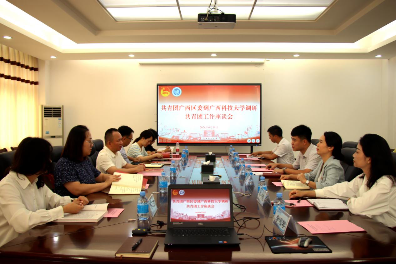 4月19日上午,共青团广西区委学校部部长李畅宝一行到我校“千校万岗”广西大中专学生就业精准帮扶行动线下双选会现场指导工作并开展共青团工作调研座谈。学校党委常委、副校长秦小云接见并一同考察,校团委全体干部、二级学院(部)领导及团干代表在文昌校区办公楼4-1会议室与团区委一行进行交流座谈。