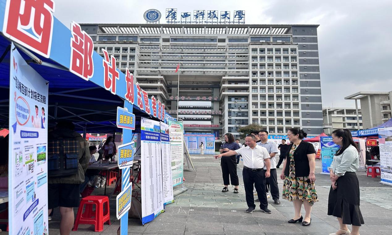 为抢抓2024届毕业生就业工作关键期,帮助更多毕业生在离校前落实毕业去向,4月19日,由共青团广西区委主办,我校承办的“千校万岗”广西大中专学生就业精准帮扶行动线下双选会在我校文昌校区成功举办。共青团广西区委学校部部长李畅宝一行到现场指导工作,校党委常委、副校长秦小云接见并一同指导。校团委全体干部、二级学院(部)领导及团干代表到场参会。
