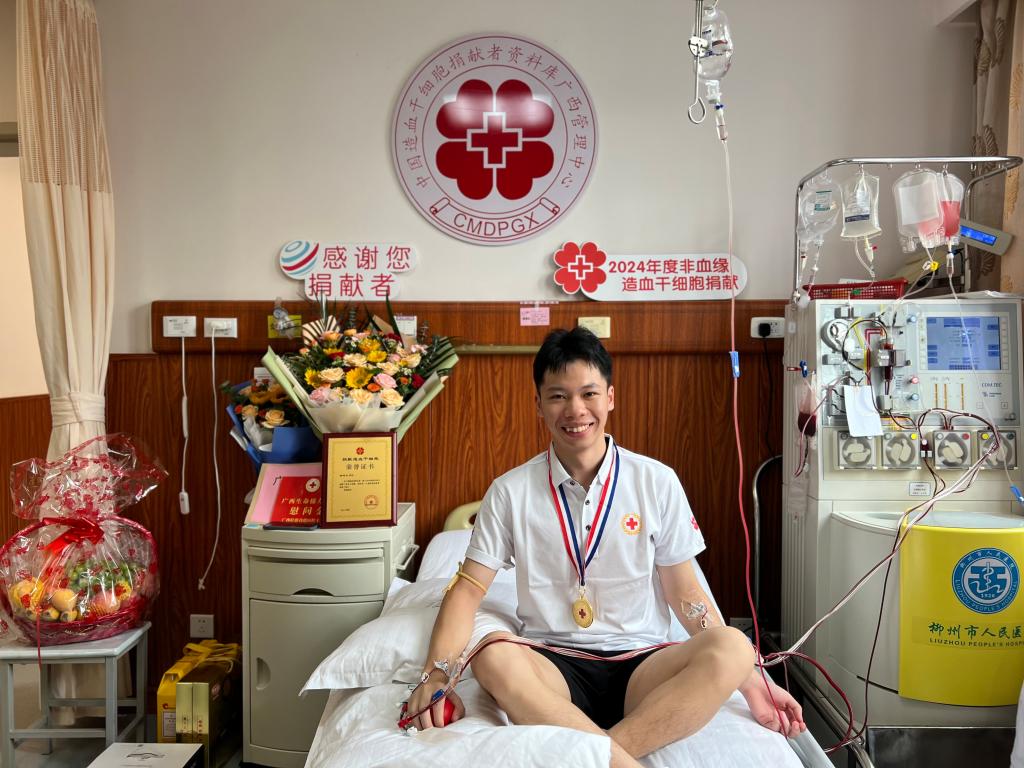 经过6个小时的采集,杨海文成功捐献了249毫升造血干细胞混悬液,成为了全国第17881例,是广西第635例,柳州第93例,柳州今年第4例,这也是柳州在校大学生首例造血干细胞捐献者。