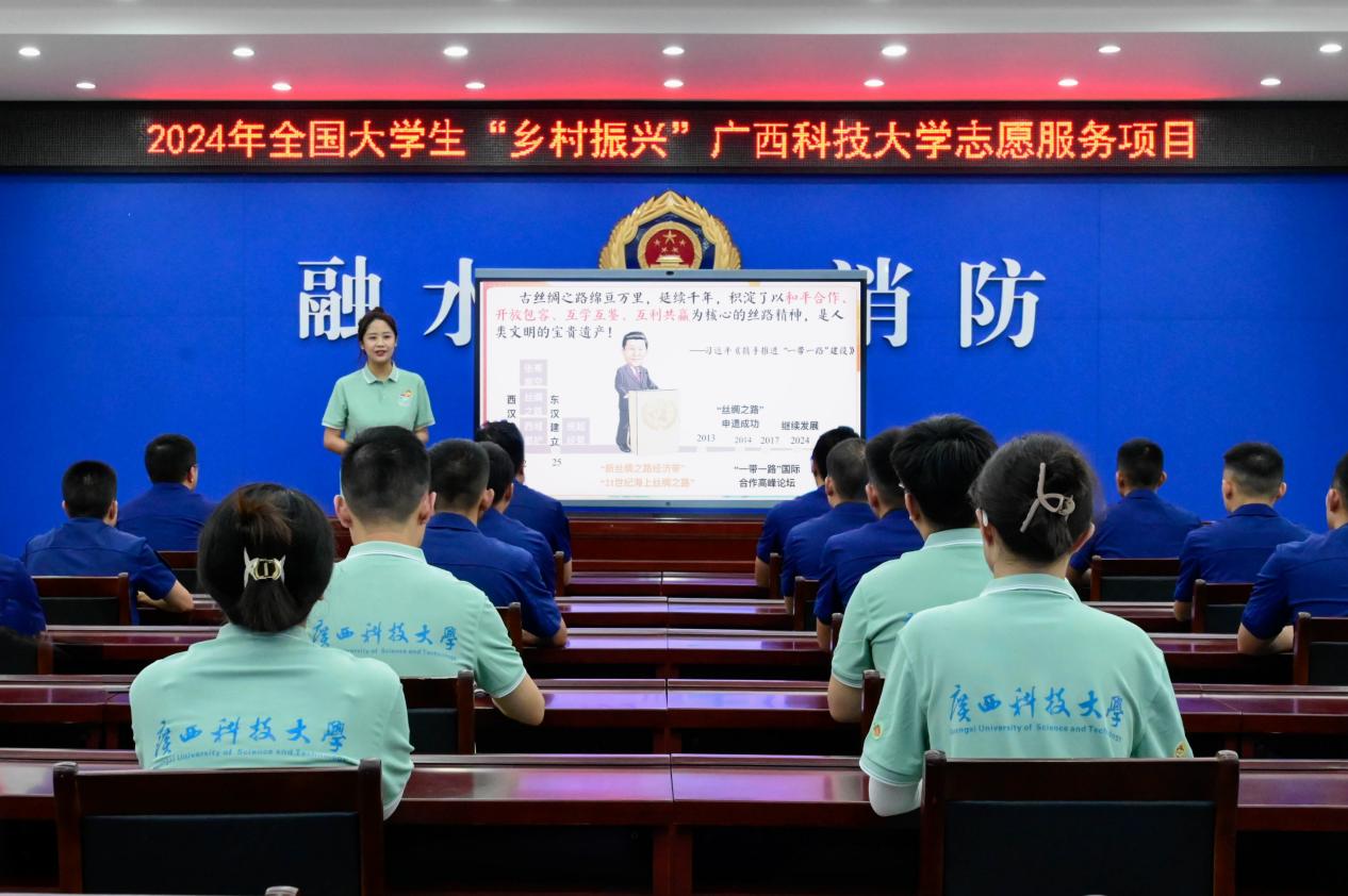 暑期已至,我校大学生暑期社会实践在火热的七月拉开帷幕。7月8日至10日,广西科技大学“扬马先声”理论宣讲服务队走进融水苗族自治县,前往苗家小镇社区、苗家小镇小学、中国农业发展银行融水支行、融水消防救援大队、乡村振兴扶持企业、融水香粉乡雨卜村等多地,采用“集中式”座谈宣讲、“靶向式”调研宣讲、“蹲点式”入户宣讲等方式,以社会主义核心价值观、乡村振兴、铸牢中华民族共同体意识、文化传承等为主题,为融水人民群众带来了10余场生动精彩的理论宣讲。