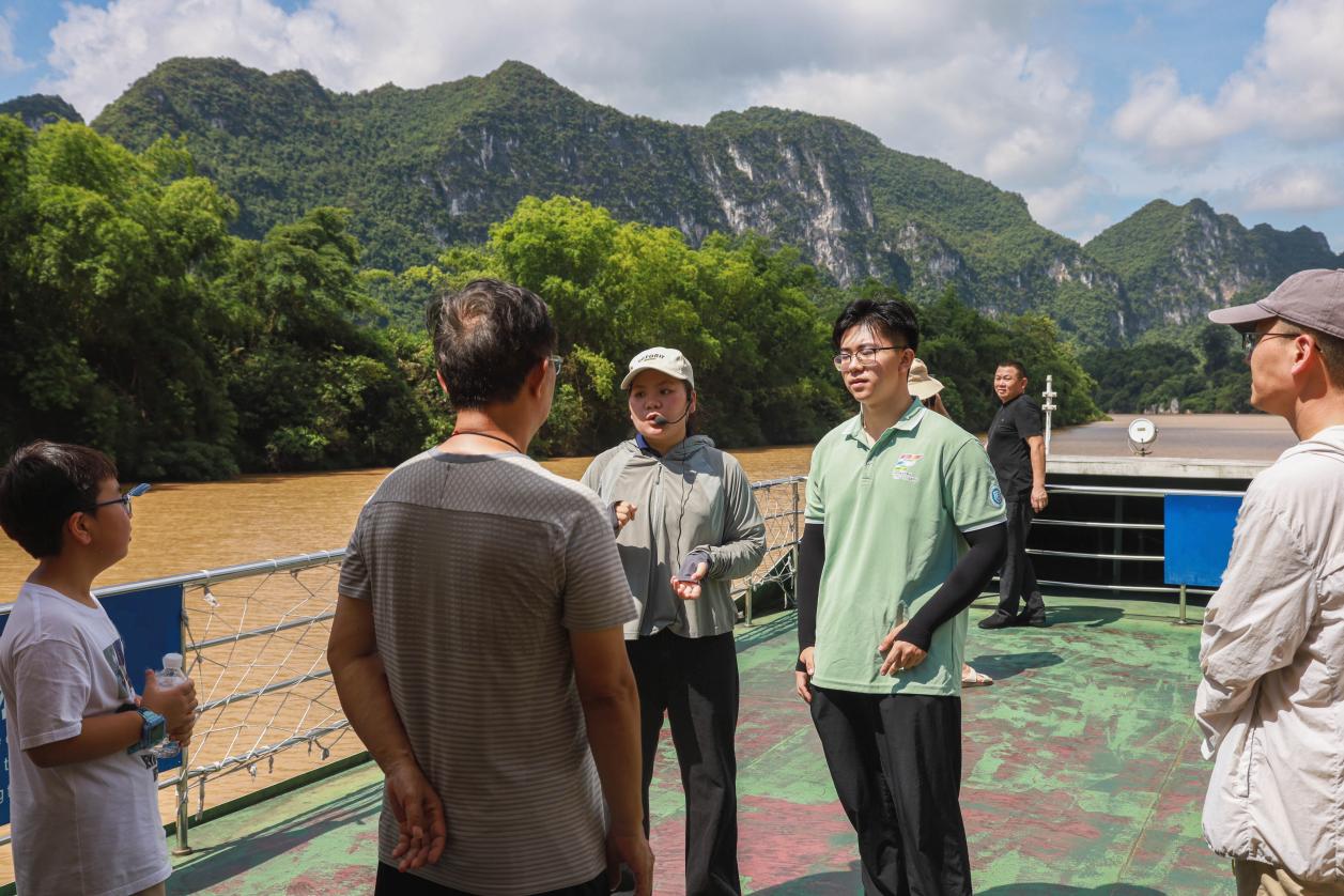 广西科技大学“00后话百年”宣讲服务队成员向游客群众开展理论宣讲
