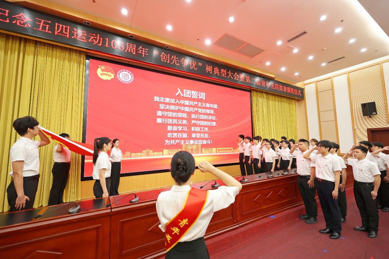 会上,与会领导为获得青年五四奖章、五四红旗团委、优秀共青团员等先进集体和个人颁奖,并为新团员佩戴团徽,共同见证入团宣誓。受表彰的先进集体和个人进行了先进事迹分享和工作展示。