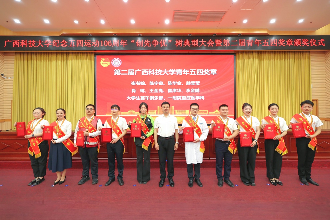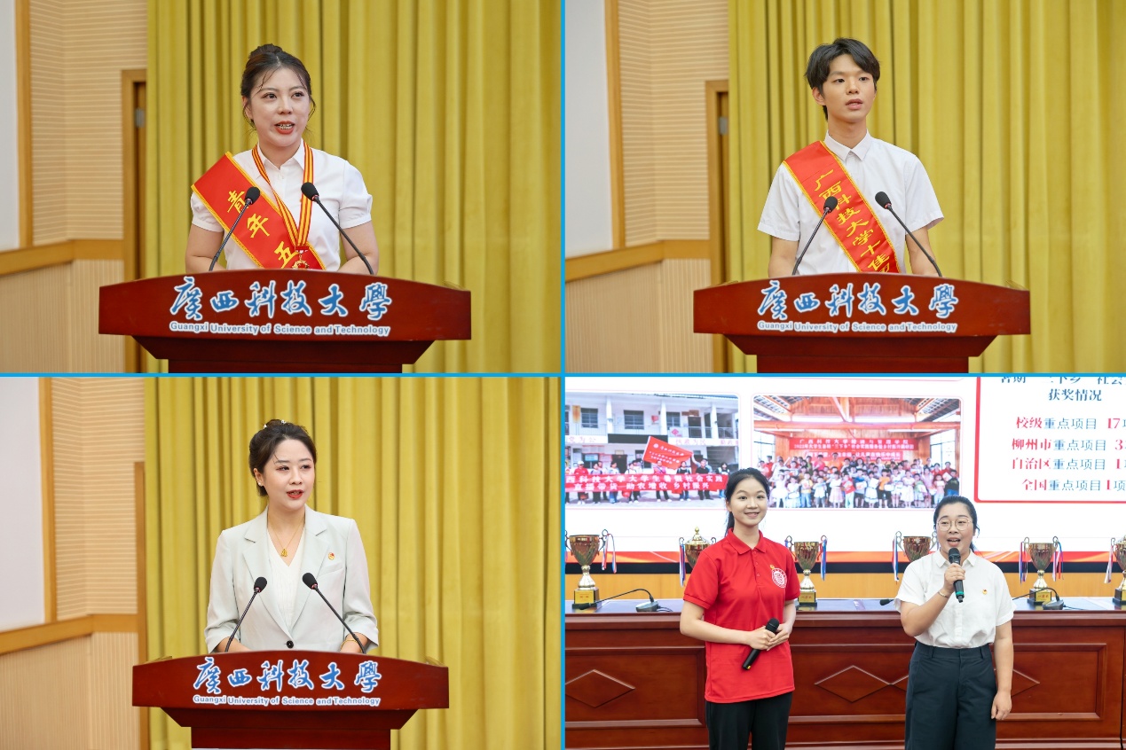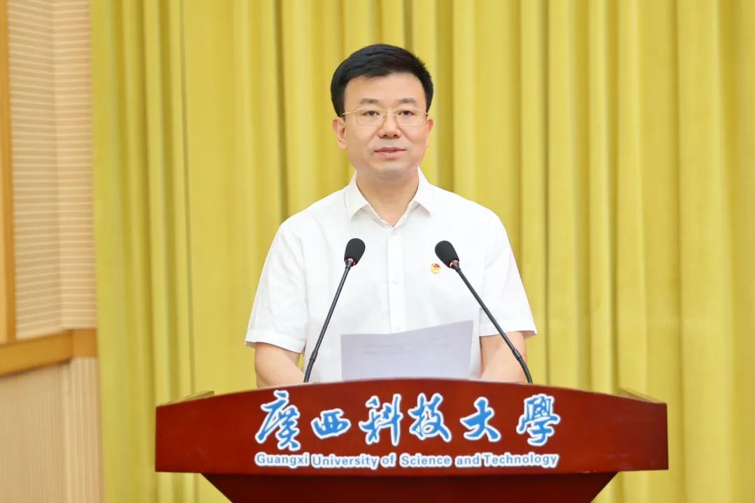 赵君代表学校党委向全校青年师生致以节日的问候,向受表彰的先进集体和个人表示热烈祝贺。赵君指出,中国共青团是中国青年运动的先锋队,是党的忠实助手和可靠后备军。广大青年师生要将习近平总书记对新时代青年的谆谆嘱托和关怀厚爱,转化为建设新时代壮美广西的生动实践,以青春担当共铸广西科大命运共同体,携手助力学校沿着高质量发展轨道,乘风破浪、稳健前行,努力创造无愧于学校、无愧于历史的新业绩。他对全校师生提出了4点希望和要求,一是广大团员青年要高扬理想信念旗帜,争做有理想、敢担当、能吃苦、肯奋斗的新时代好青年;二是共青团干部要淬炼育人先锋本色,甘当青年成长的坚实阶梯,努力成为新时代德才兼备的“大先生”;三是共青团要筑牢为党育人根基,切实肩负起新时代新征程党赋予的使命任务;四是学校各级党组织要强化党建领航作用,把准思想政治教育方向,完善内部协同机制,提升党建带团建效能,构建协同育人新格局。