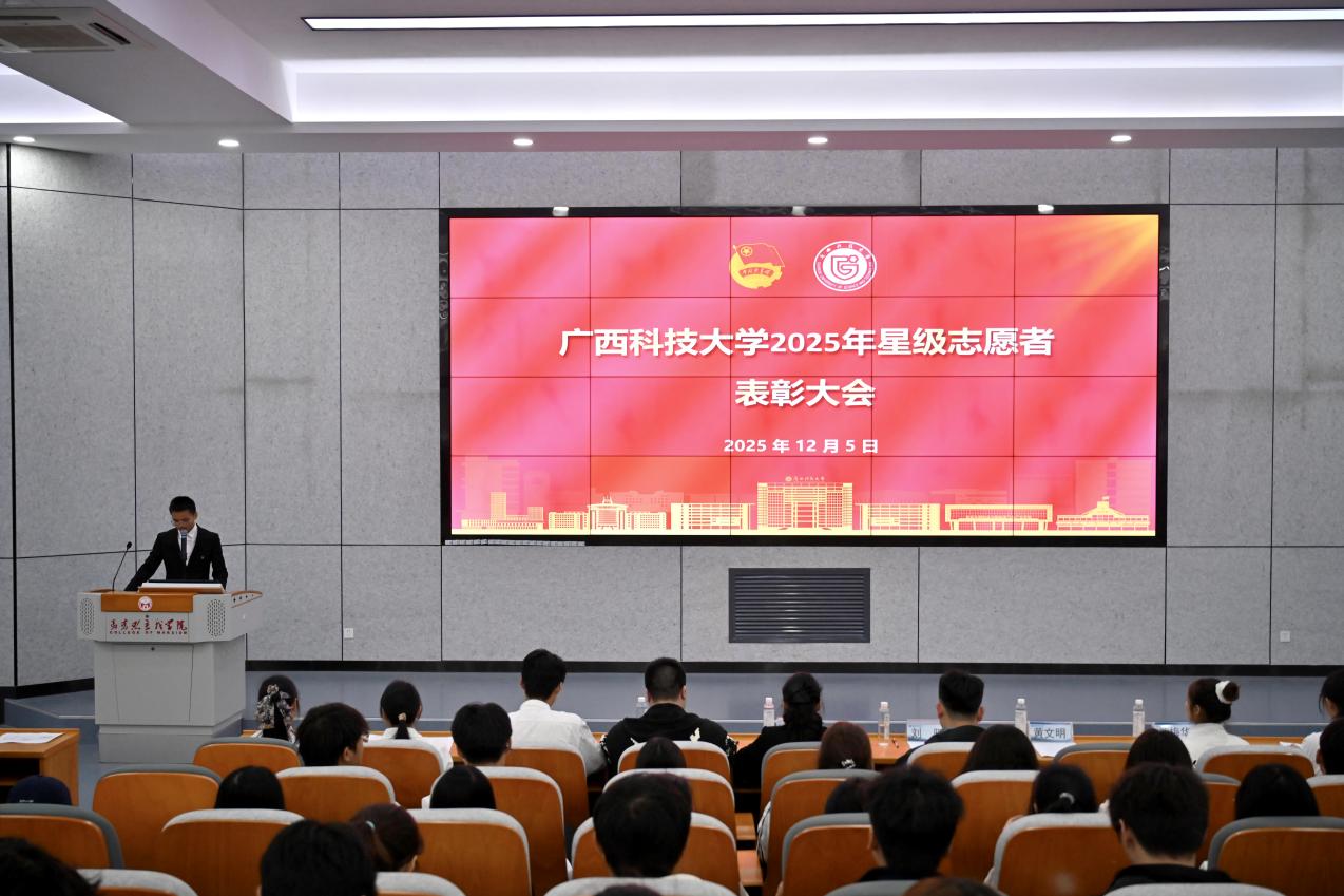 12月5日,时值世界志愿者日,学校在文昌校区4阶6报告厅举办2025年星级志愿者表彰大会,校团委相关负责同志、受表彰的志愿者代表及校院(部)两级青协骨干等140余人参会。