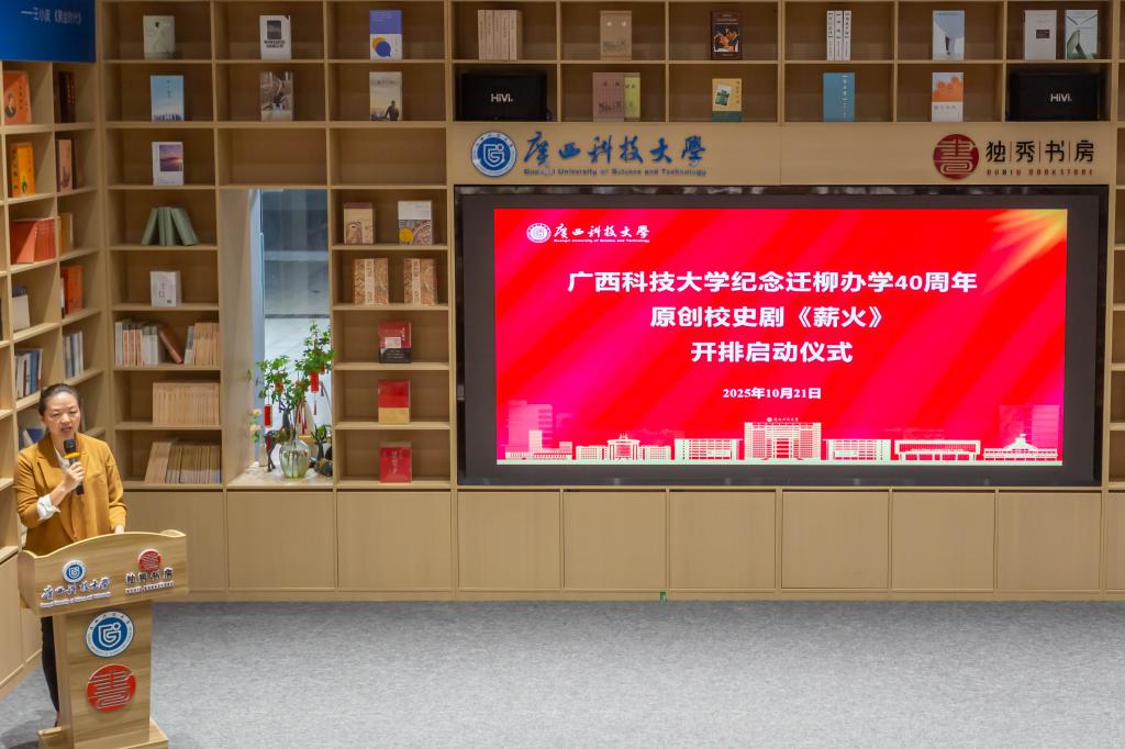 10月21日下午,学校纪念迁柳办学40周年原创校史剧《薪火》开排启动仪式在独秀书房举行。学校党委副书记、校史剧《薪火》总监制宾月景,广西“桂花表演奖”获得者、校史剧艺术顾问许诗琳导演,以及主创团队师生代表共计50余人参加仪式。