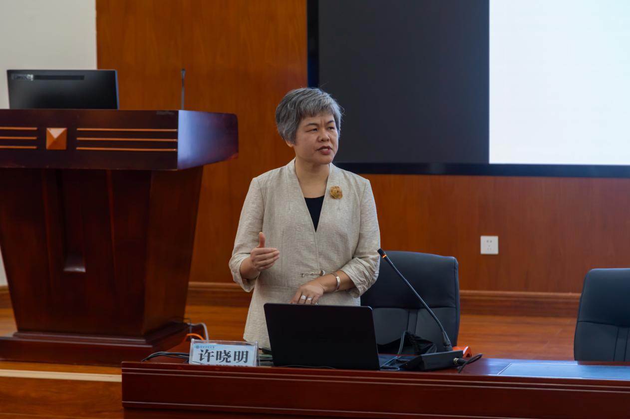 许晓明研究员以《广西三月三——各民族共享的节日庆典》为题,从丰富的史籍史料切入,结合多年田野调查成果及广西多地三月三民俗文化考察经历,系统阐释了这一传统节日的历史渊源、文化内涵、社会功能及当代传承路径,为现场师生呈现了一幅生动的广西民俗文化画卷。她指出,三月三对于弘扬广西各民族优秀传统文化、建设文化强区、巩固民族团结进步示范区具有重要意义,并勉励青年学子深入壮乡、走进群众,在真实的生活语境中感受民族文化魅力。