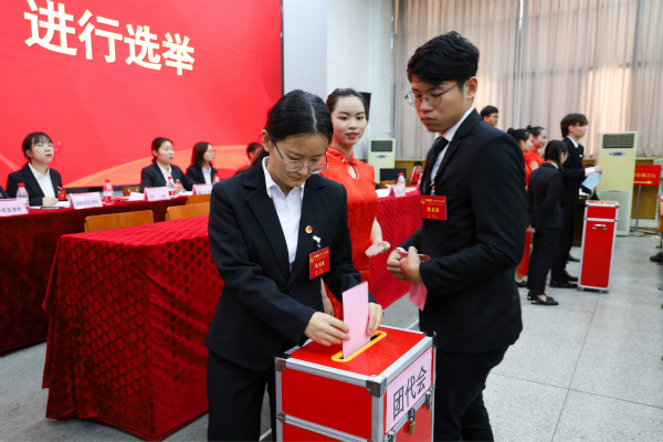在监票员的监督下,与会代表有序投出自己庄严的一票。最后,会议选举产生了共青团广西科技大学经济与管理学院第一届委员会和广西科技大学经济与管理学院第一届学生委员会。