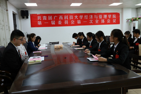 共青团广西科技大学大学经济与管理学院第一届委员会第一次全体会议在学院会议室4B409举行,翁文雯当选为共青团广西科技大学经济与管理学院第一届委员会书记。广西科技大学经济与管理学院第一届学生委员会第一次全体会议在学院会议室4B609举行,来自金融181班的田保桦同学当选为第一届学生会执行主席。