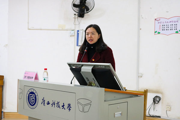王湘林的授课案例丰富,教育大家要做同学们的的榜样,学先进争先进;要恪守学生的本分,勤奋学习积极工作;要做老师的得力助手,为同学们服务。