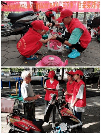 “小扳手”队员们顶着夏日的酷暑,深入柳州市城中区潭中街道广西科技大学社区、西雅社区和沿江街道鹿山社区开展电动车、自行车检查维修和汽车保养咨询服务。在维修服务过程中,“小扳手”队员们充分发挥自己的专业知识及技能,使用钳子、扳手、万用表等工具,将居民送修的电动车、自行车和小家电进行了拆装、检测与维修。同时在服务现场,他们还为社区居民发放出行交通安全的宣传资料,为社区群众普及电动车安全使用常识。“小扳手”们耐心的讲解、贴心的服务和全面的技术保障得到了各个社区居民的一致好评,周围小区的居民闻讯也纷纷把自己的“爱车”送来免费检修。据统计,小扳手志愿服务队为三个社区的居民成功修好电动车、自行车120余辆,小家电40余件,提供汽车保养咨询20余次,真正让社区居民在自己的家门口感受到“便民、惠民和利民”服务。