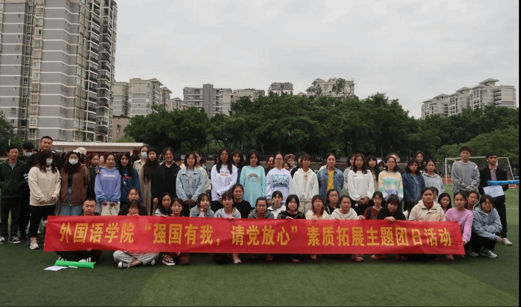 为深入学习贯彻习近平总书记“七一”重要讲话精神,培养广大外国院学院学子爱国主义精神,用真本领践行“强国有我”的青春誓言,10月17日下午,外国语学院组织2021级本科新生及研究生在田径场开展了“强国有我,请党放心”素质拓展主题团日活动。