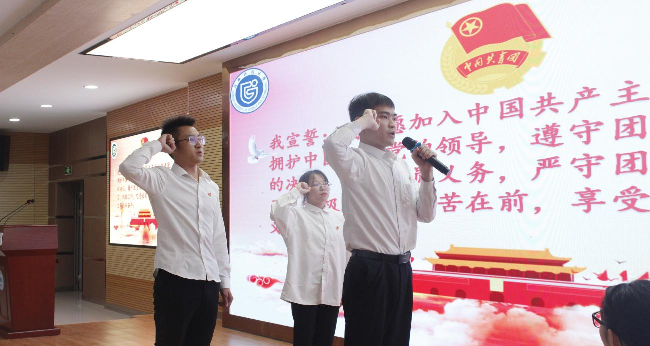 最后,新团员在团旗面前庄严宣誓,全体团员青年们一起共同重温入团誓词,会议在大合唱《光荣啊,中国共青团》的歌声中落下帷幕。