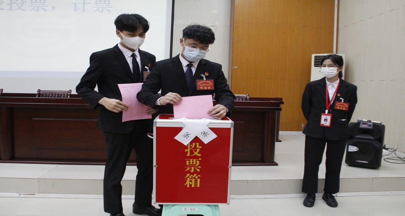 在随后进行的会议中,参加竞选的37名候选人上台做精彩演讲。饱满的热情,精心的演讲,流露出候选人对学生会工作的真挚渴望,以及敢于表现自我的信心和勇气。各位代表秉持民主、公开、公正的原则进行无记名投票,最后选举产生了新一届的学生委员会。最后,学院学生会执行主席袁廷龙致闭幕词。