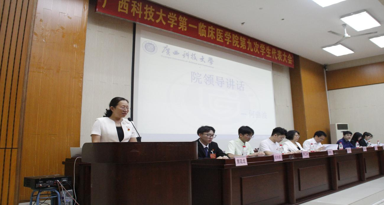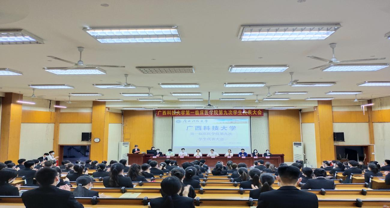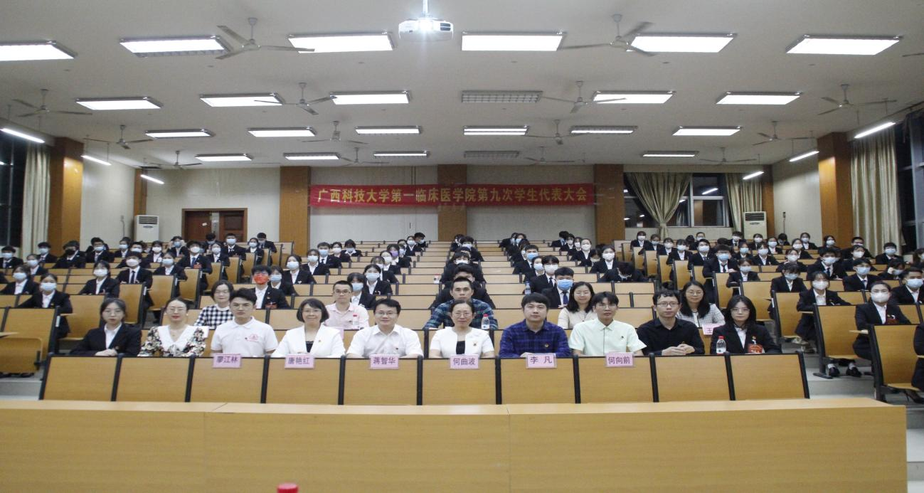 为深入学习贯彻习近平新时代中国特色社会主义思想,进一步推进我院共青团的各项事业,广西科技大学医学部于2022年5月14日19:30在柳石校区1310报告厅举行广西科技大学第一临床医学院第九次学生代表大会。莅临本次大会的嘉宾有医学部党委副书记、纪委书记蒋智华,第一临床医学院党委副书记何曲波,第一临床医学院学工办主任、团委书记唐艳红,第一附属医院团委负责人、第一临床医学院团委委员李凡,广西科技大学校学生会执行主席廖江林,医学部学生会执行主席何向前以及第一临床医学院辅导员和学生代表139人。