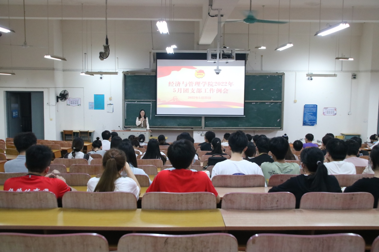 5月24日晚,经济与管理学院团委在东环校区第五教学楼北203教室,召开2022年5月团支部书记工作例会,会议由学院团委书记翁文雯主持,学院全体团支部书记、副书记参加了本次会议。