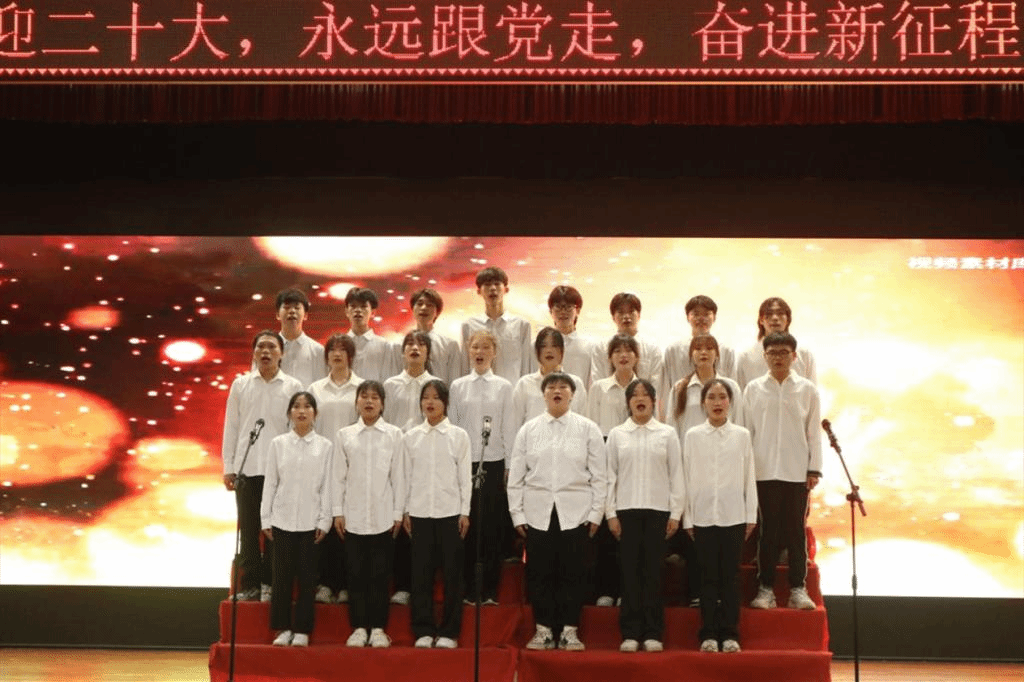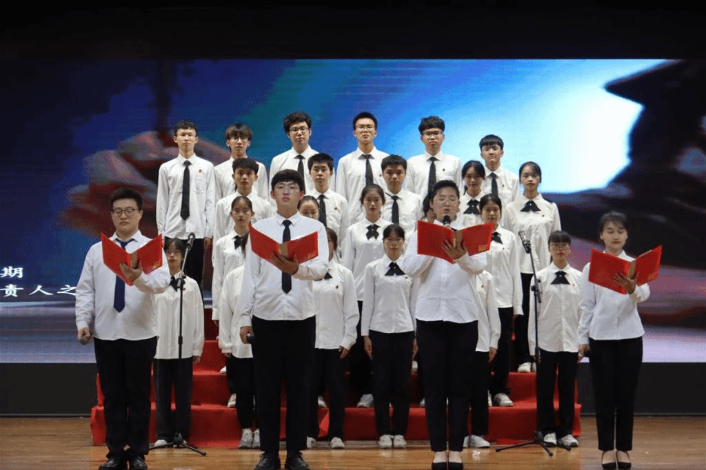 最后,全体成员重温入团誓词、齐唱《光荣啊,中国共青团》。