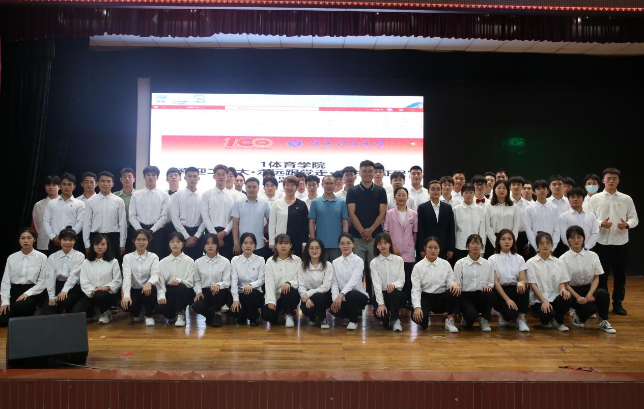 青春心向党,百年再起航。为引导青年学生坚定跟党走、建功新时代,5月10日下午,体育学院在大学生活动中心举行“喜迎二十大·永远跟党走·奋进新征程”主题教育实践活动。学院党总支书记、院长张辉明,党总支副书记彭发胜,副院长王萍、莫双瑗以及全体在校学生参加主题教育实践活动。活动由学院学工办主任、团委书记庞乾静主持。