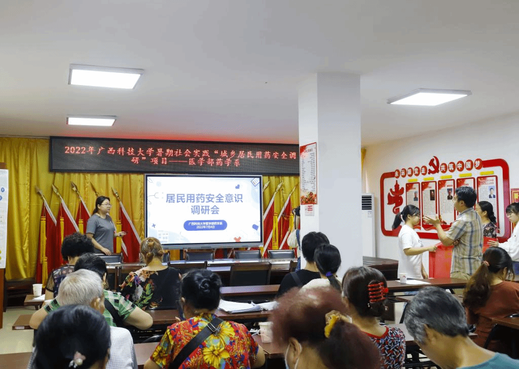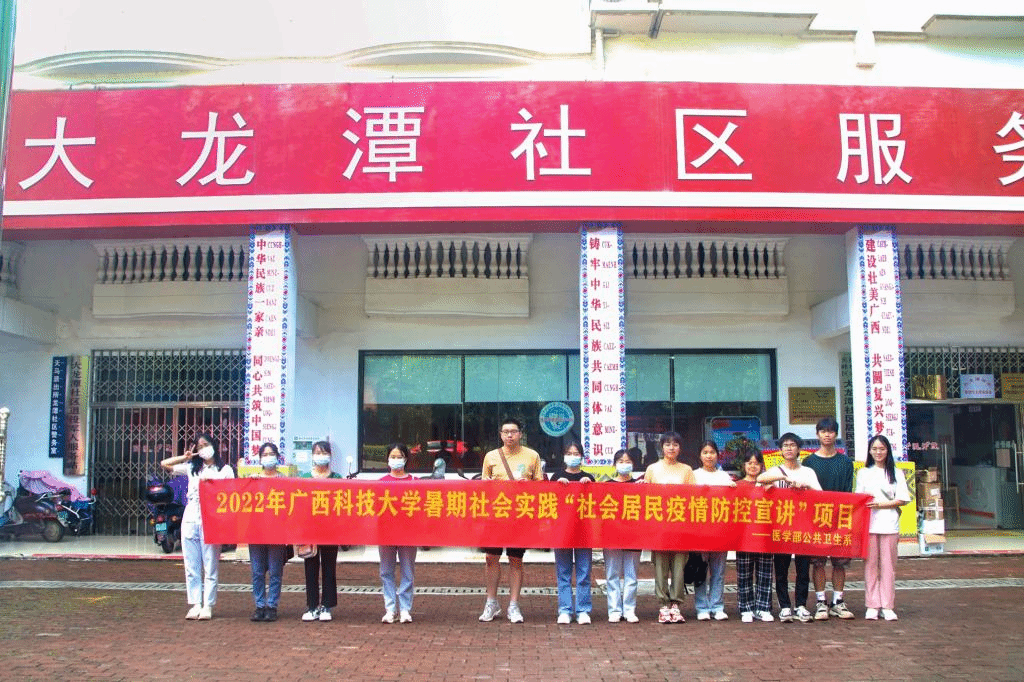 7月4日,医学部药学系、护理系和公共卫生系社会实践团队在柳州市鱼峰区天马街道大龙潭社区开展理论普及宣讲、发展成就观察等一系列内容丰富、形式多样的暑期社会实践活动。
