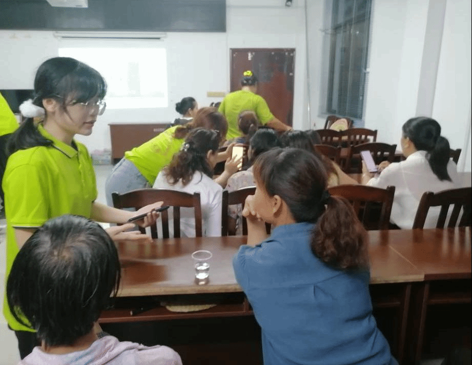 大家根据调研的情况对直播培训的一些环节和内容进行了调整后,7月11日,第一期电商直播培训与村民见面啦。村民们兴致很高,提前半个多小时就来了接近三十人,有些还是去年培训过的学员。村民们看见同学们熟悉的面孔,纷纷上前打招呼,还分享了自己的抖音号的视频。