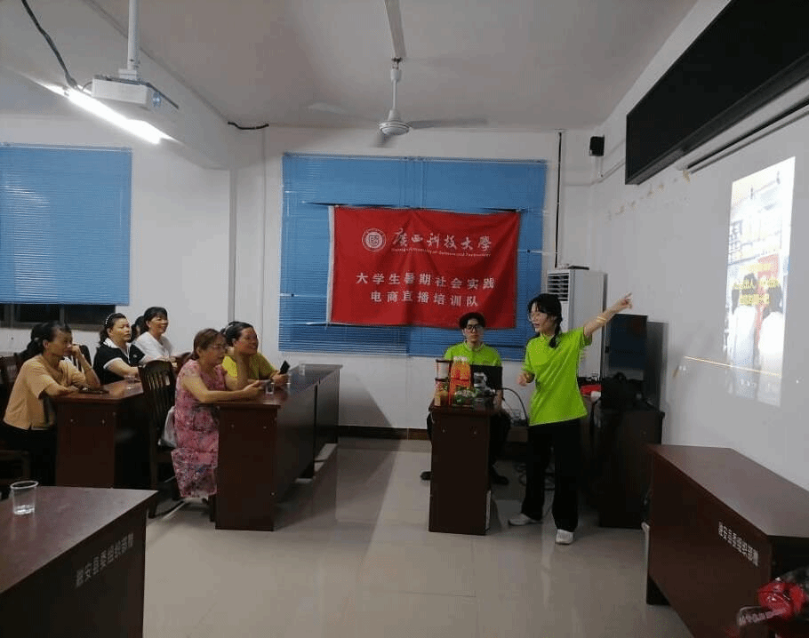 7月9日,经济与管理学院"新农公社"电商直播培训队在指导老师的带领下,奔赴柳州市融安县潭头乡西岸村开展为期7天的电商直播培训活动。
