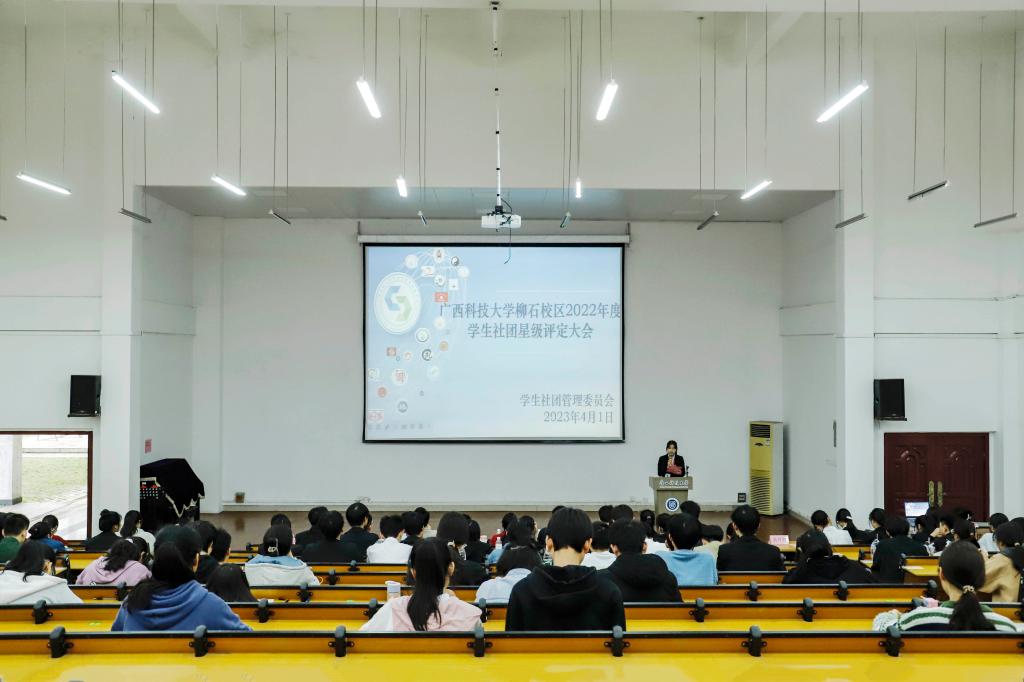 4月1日,医学部在柳石校区1110报告厅举办2022年度“星级学生社团”考核大会。学校教育评价与教师发展中心教师发展科科长、晨光文学社指导教师韦桂美,学部护理系办公室主任、党政办主任、视力保护协会指导教师周雪芳,学部公共卫生系团总支书记、篮球协会指导教师梁典胤,学部药学系团总支书记、太极协会指导教师潘珏年,学部教学办老师、樱纷动漫协会指导教师陈金绪,医学部团委委员郭钰婷,学部团委学生副书记邓景力,学部学生会执行主任杨璇受邀出席,学校社团联合会柳石分会、柳石校区各社团代表约300多人到场参加。
