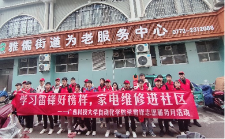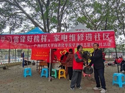 3月18—19日,自动化学院志愿者分别到学校文昌校区教职工家属区和柳州市广雅社区组织开展免费家电维修活动,共接收电器108件,修好58件,修好率为53.7%。对于部分现场无法修理的电器,志愿者耐心地向居民说明损坏的原因。同时,还在现场普及宣传家电的正确使用和保养知识,深受群众欢迎和好评。