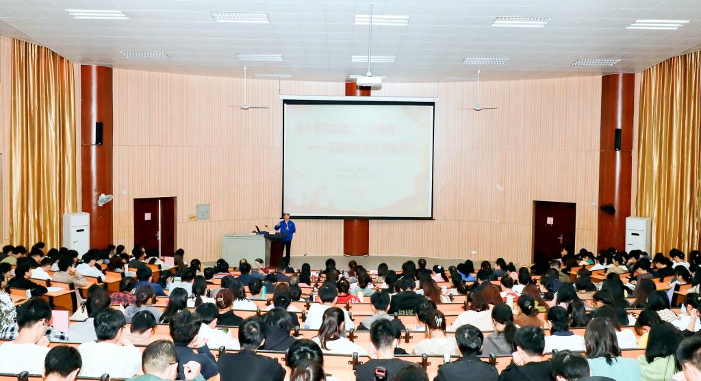 5月12日上午,受医学部邀请,党的二十大代表、广西汽车集团有限公司首席技能专家、国家级技能大师工作室负责人、2022年“大国工匠年度人物”、广西科技大学优秀校友郑志明高级工程师到校作专题辅导报告。报告会由医学部党委常务副书记廖奕主持。医学部全体处级领导、党支部委员、学部机关和三系一部师生党员代表、学生代表300余人参加报告会。