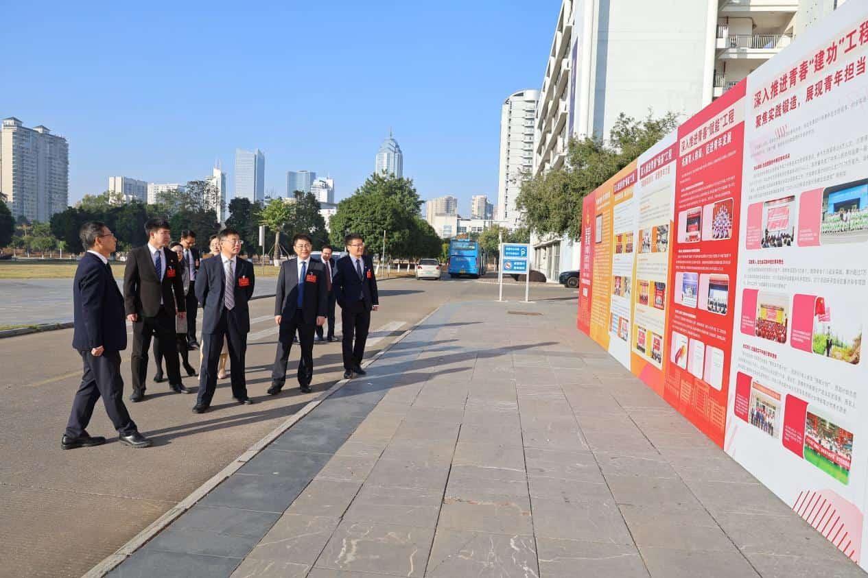 开幕会前,与会领导嘉宾参观了青春为中国式现代化挺膺担当——2021—2025广西科技大学共青团工作成果展,并与大会少数民族代表亲切交流。