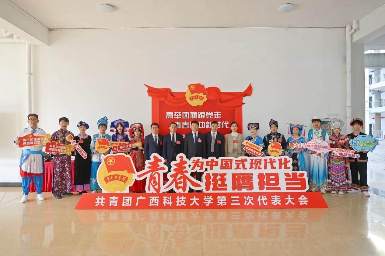 青春铸就凌云志,砥砺奋斗正当时。学校共青团将以本次大会的胜利召开为新的起点,更加紧密地团结在以习近平同志为核心的党中央周围,在学校党委和上级团组织的坚强领导下,高举习近平新时代中国特色社会主义思想伟大旗帜,追随信仰之光、勇担时代之责、不负青春韶华,团结带领广大团员青年以青春之我、奋斗之我,踔厉奋发、勇毅前行,在建设国内先进特色鲜明高水平应用型大学的生动实践中,在奋力谱写中国式现代化广西篇章的壮阔征程上,高唱嘹亮激越的青春赞歌;在全面建设社会主义现代化国家的伟大进军中,在全面推进中华民族伟大复兴的历史进程里,书写绚丽夺目的青春华章!