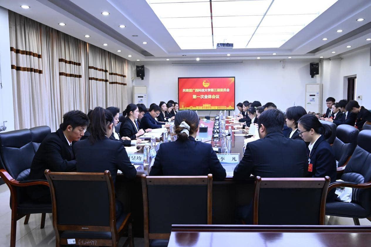 共青团广西科技大学第三届委员会第一次全体会议在文昌校区办公楼6—1会议室举行。会议选举产生了共青团广西科技大学第三届委员会常务委员会委员和书记班子。