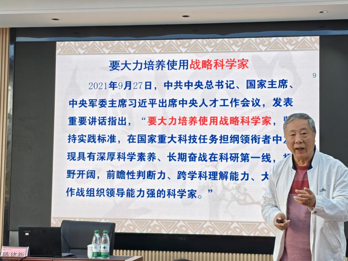 会上,陈建新教授结合个人数十次探访费孝通足迹、研读其著作的亲身经历,以漫谈形式系统分享了费孝通先生的学术精神与治学方法。他从费孝通先生的生平履历、学术成就、思想精神及其与柳州、广西的深厚学术渊源展开讲述,全面解读了费孝通先生作为中国社会学、人类学、民族学奠基者的学术地位,以及其作为民盟重要领导人、中国式现代化探求者的时代价值。陈建新教授重点阐释了费孝通先生“差序格局”“中华民族多元一体格局”等原创性理论,深入解读了贯穿其一生的“志在富民”追求与“费孝通之问”的时代内涵,详细讲述了1935年费孝通先生从柳州出发赴金秀大瑶山开展田野调查的学术历程,以及这段经历对其学术思想形成的重要意义。他结合费孝通先生26次重访江村、坚持田野调查的治学实践,分享了其“脚踏实地、不断提问”的治学方法与“和而不同、胸怀全局”的精神内核,并提出“费孝通是中国式现代化道路的先驱与脚踏实地的探求者”“费孝通与钱学森是当代中国两位最伟大的战略科学家”等学术观点,呼吁师生研读《江村经济》《乡土中国》等经典著作,传承费孝通先生治学理念,将学术研究与时代发展、地方实际相结合。